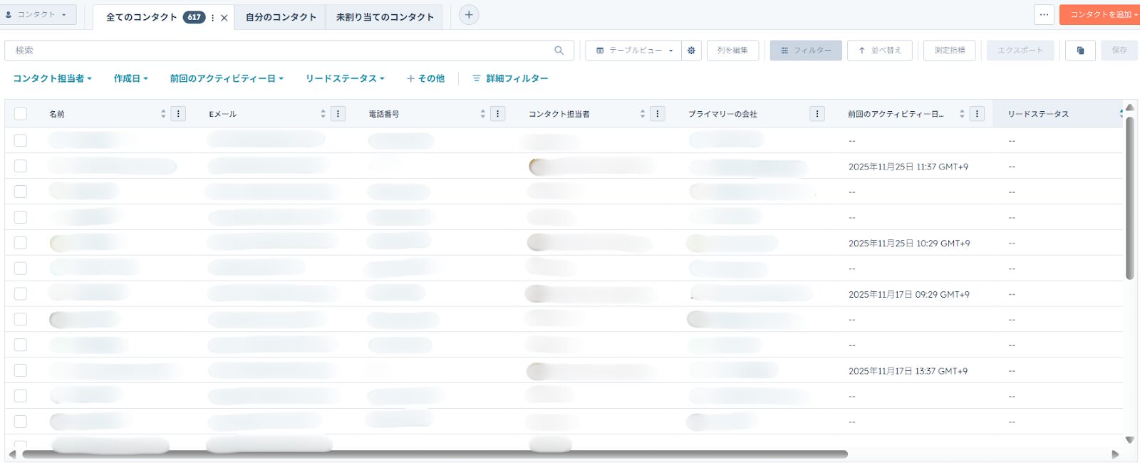 フォームから送信されたデータは、HubSpot CRM内の「コンタクトレコード」に蓄積されます。
