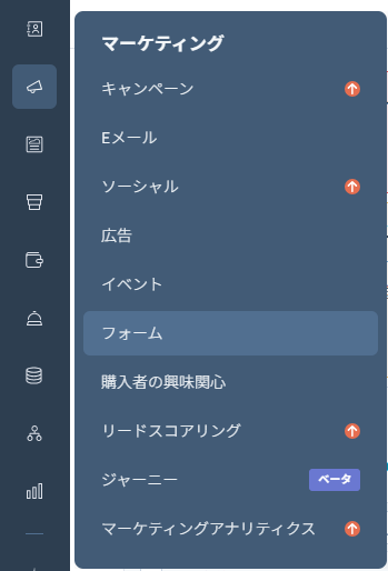 まず、HubSpotにログインし、メニューバーから[マーケティング] > [フォーム]へと進みます。
